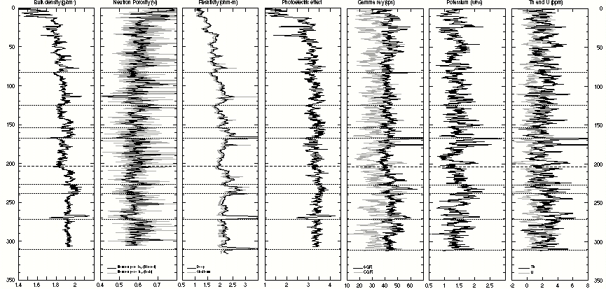 Summary of LWD data at Hole 1040E. SGR: total spectral gamma ray, CGR: computed spectral gamma ray.